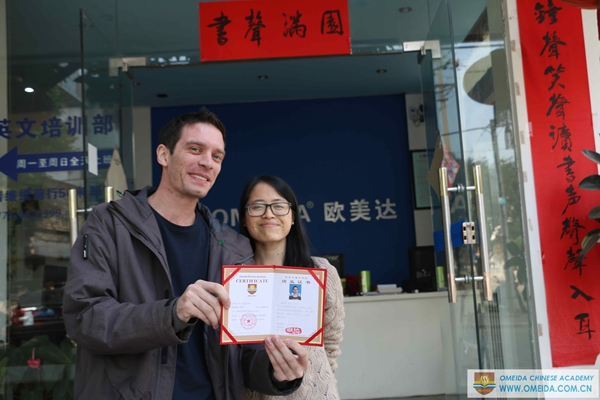 Congratulations to Tom who has just finished 12-weeks HSK course at Omeida! It has been an unforgettable experience we enjoyed together. We hope to see you again and wish you all the best in the future.