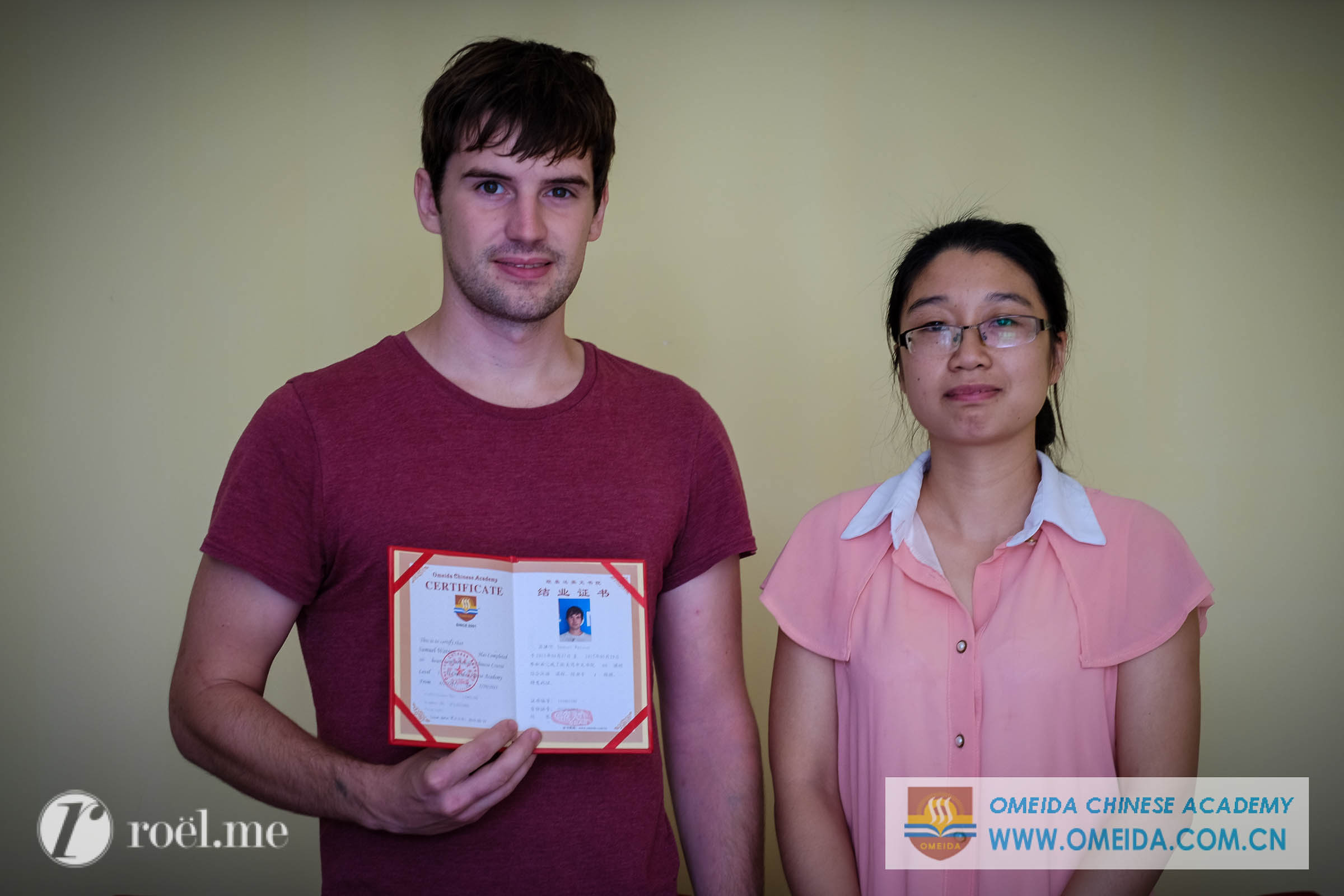 Congratulations to Sam who has finished his Chinese comprehensive course at Omeida! Well done of your study here. It was a great time to have you at Omeida. And he will stay for more several days at Ynahgshuo. Enjoy your trip! We hope to see you again and wish you all the best.