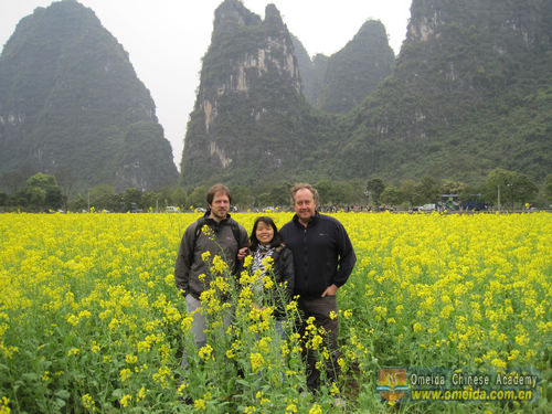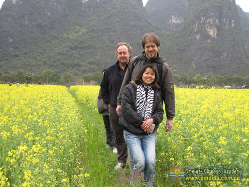 Saturday, march 26th 2011, Omeida Chinese Academy organized a sightseeing at countryside around the dragon river, Helen,a chinese teacher in Omeida Chinese Academy, was the tour guide for two foreign students Jonanthan and Loic, during the whole day , they were walking throught the field with the yellow cole flower, enjoying the nature of fresh air and comfortable weather, eating the delicious meal in farmhouse.