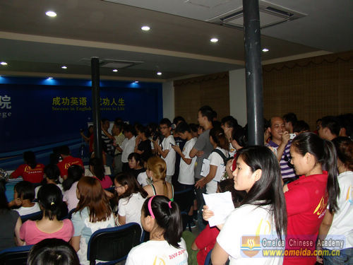 The song sung by the students of the Chinese Department was ''Tao Hua Duo Duo Kai''(which means:peach flowers are blossoming).It's really a happy song, so when we were singing, all the audience clapped along the rhythm.At the end of the competition, we were awarded the second prize.