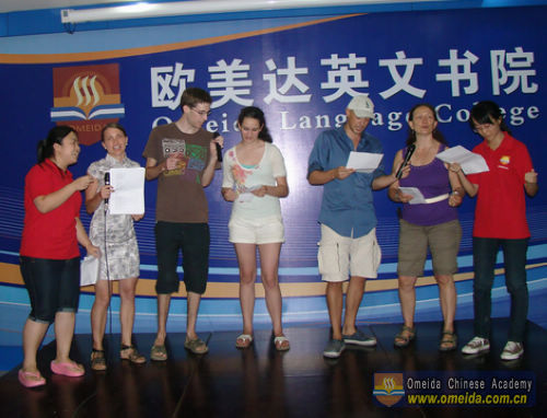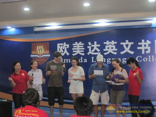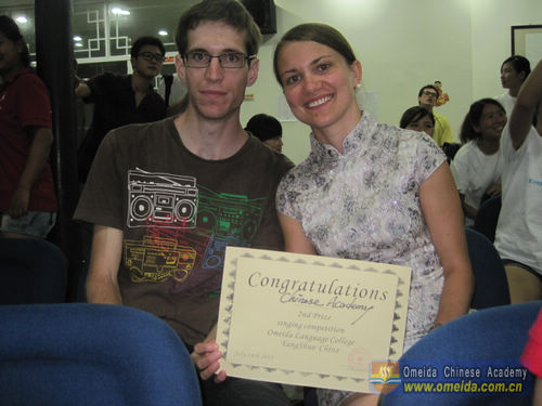 Joshua is a foreign student of Omeida Chinese Academy, he had a solo in the competition. His voice is nice and full of emotion,and his pronunciation of Chinese is also exact, so he came first as an individual entrant.Congratulations to him!
