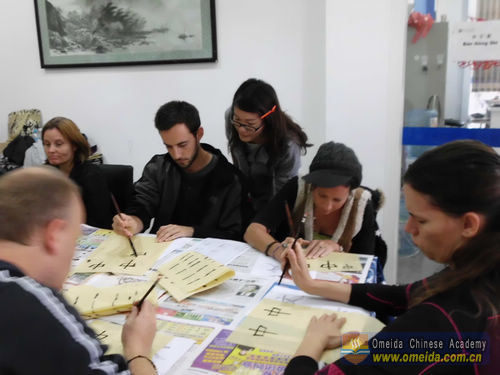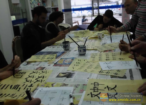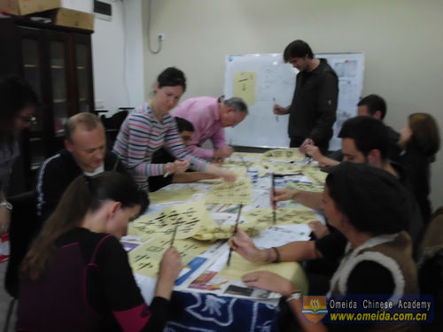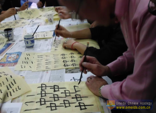 In order to make students know more about Chinese culture, on Wednesday, October 5th 2011, Omeida Chinese Academy had a Chinese calligraphy class. In that class, the students studied the development of the Chinese characters, and used the writing brushes to write calligraphy by themselves. Afterwards, all the students felt that it was really a great experience.