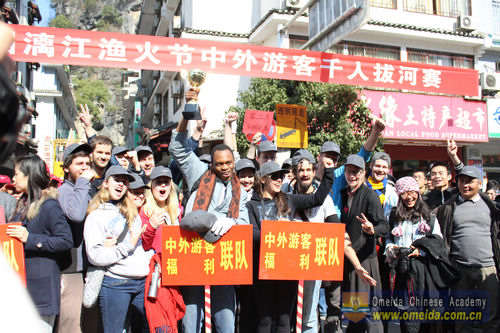 Being invited by the Yangshuo Tourism Bureau, Omeida organized the students to take part in the activities.