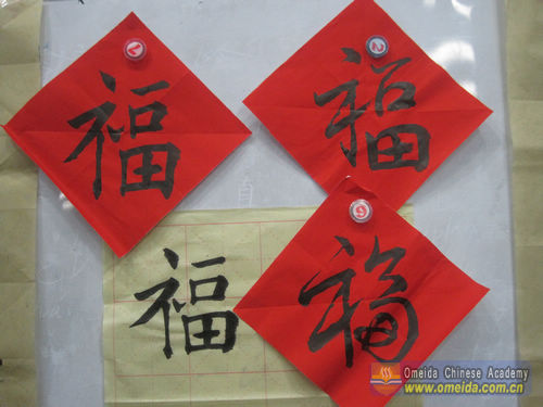 There was a calligraphy lesson on January 17th, 2012. We were going to write the “福” which meant blessing and luck in Chinese. Chinese people like to paste “福” on the doors on Spring Festival.