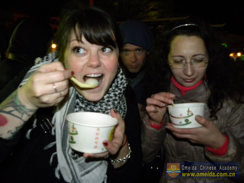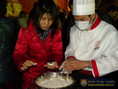 When the dawn comes, we go to the very famous west street to make sweet dumplings. Of course, we have many qualified cooks!