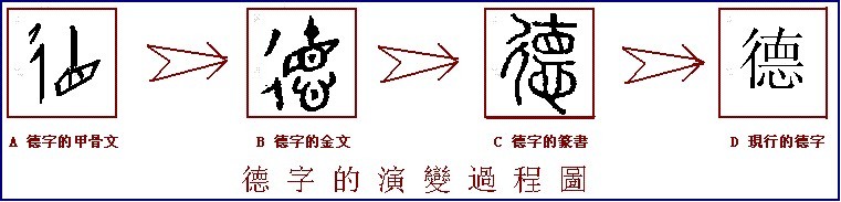 in small seal script, the upside of the right part becomes “直”.the behavior with a straight and upright heart is “德”.