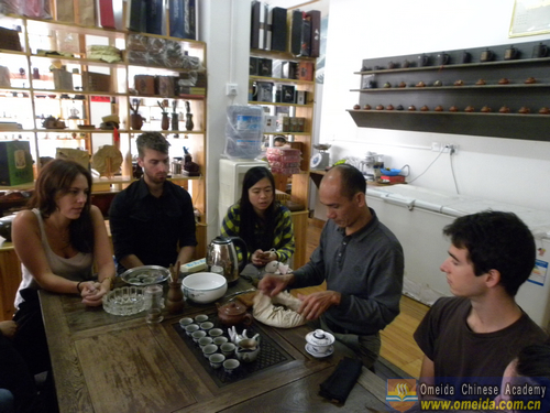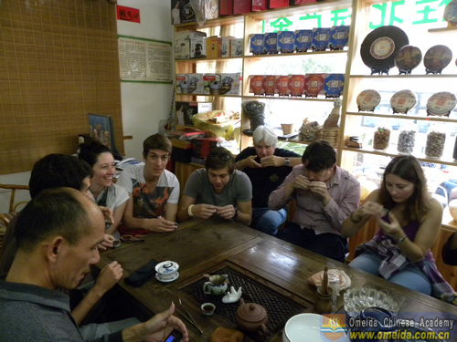 To begin with, the shopkeeper showed us Pu'er tea, which is a variety of fermented dark tea produced in Yunnan province.