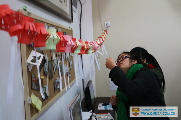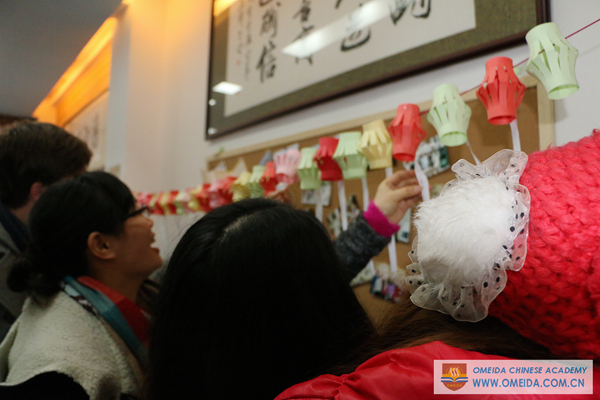 We learned the customs about the traditional festival in the cultural class this week. Students in Chinese Academy had fun in creating colorful lanterns. And we competed in riddles competitions with students in English College.At the end of the class, we ate yuanxiao to celebrate and make a wish for the year.