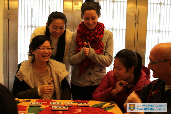 Although it’s the third time for Michel to study here, playing the traditional Chinese game, Majiang is for the time first. As a result, he was fascinated by the game in the whole afternoon. Out of question, Liz is the greatest winner with Echo’s help.