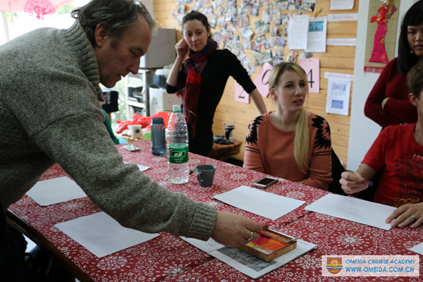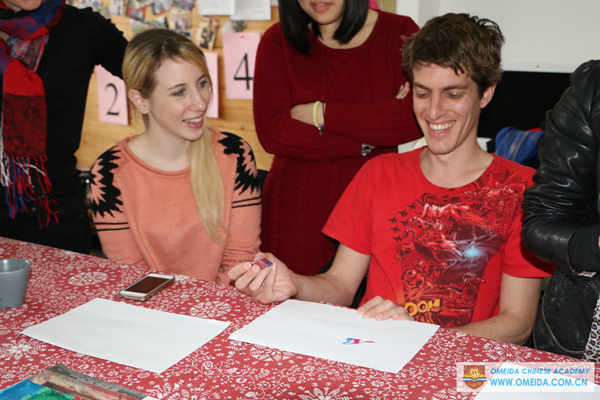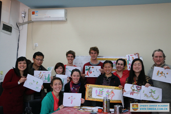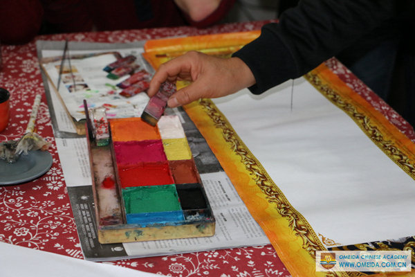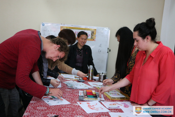 It was an honor for us to invite one local artist to give us a class. Becky interviewed her and they talked about the experience in learning this type of art. The artist talked about the most important thing for this kind of the painting, which is the distribution of the different drawings. After the brief introduction, we learned the basic skills and tried to do our own painting.