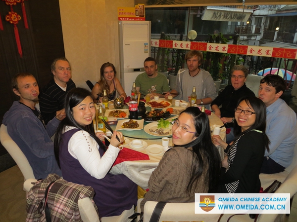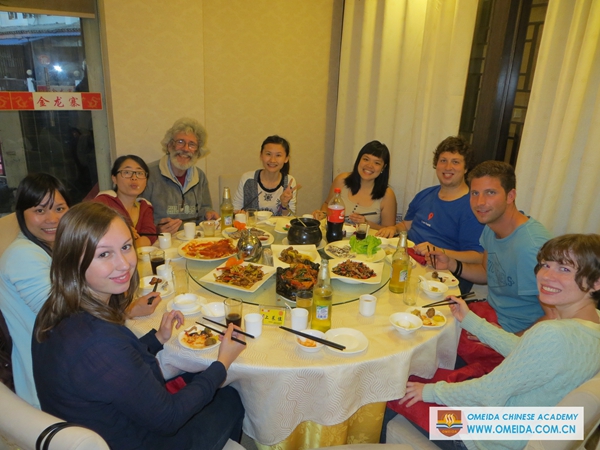 Omeida Chinese Academy organizes class dinner once a month. It’s a great opportunity for students and staff to spend time with each other outside of the classroom while enjoying delicious Chinese food. For class dinner this month, we went to “City in City” which is a nice restaurant in Yangshuo. There were many different Chinese dishes offered and everyone enjoyed the meal!