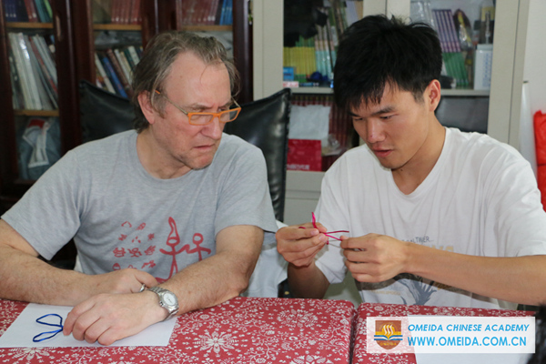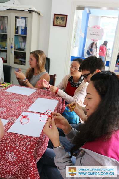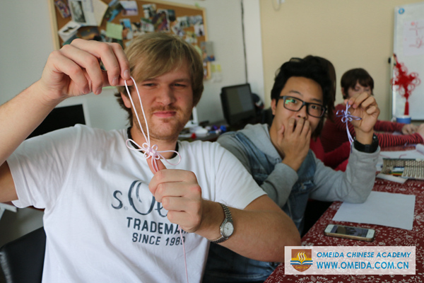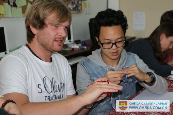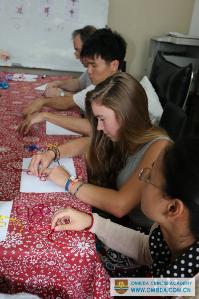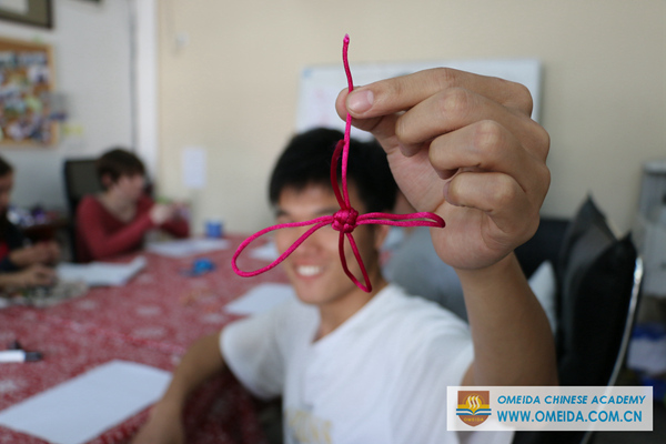 It was the first time for our foreign students to learn Chinese knot. We followed the process step by step.