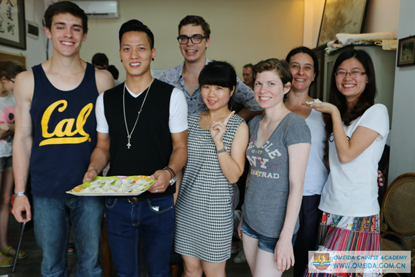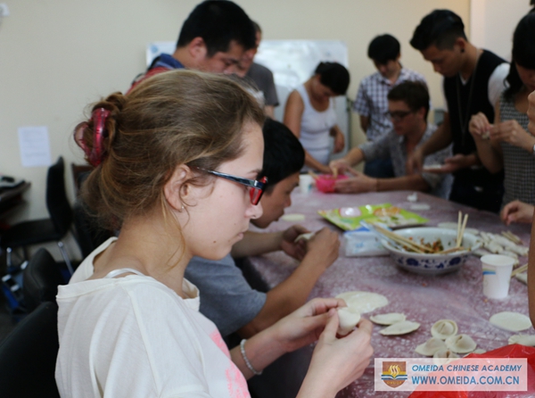 We gave a cultural class on dumplings to our students and tried to make some to cook.