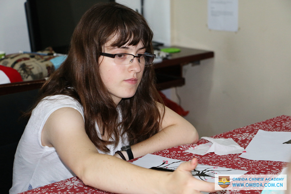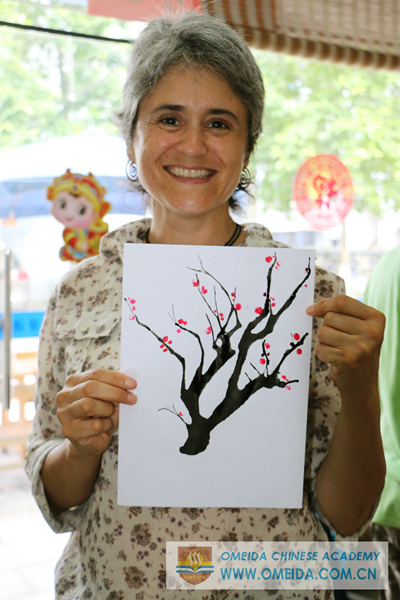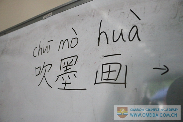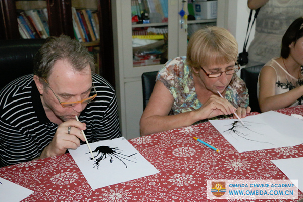 Learn Chinese in Cultural class ,吹墨画(chui mo hua)——Chinese ink-king blowing painting.