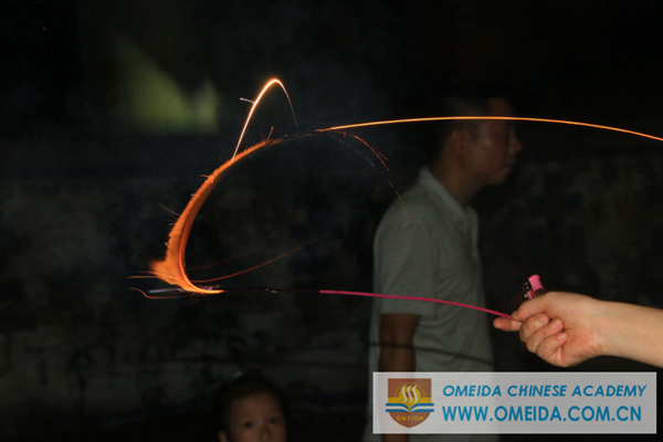 The second fantastic part was to celebrate with fireworks. We waved the fireworks for different glittering views. We all cheered about the mid-autumn festival.