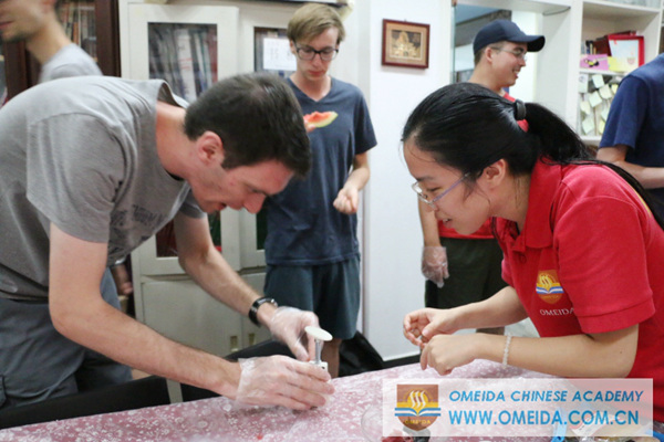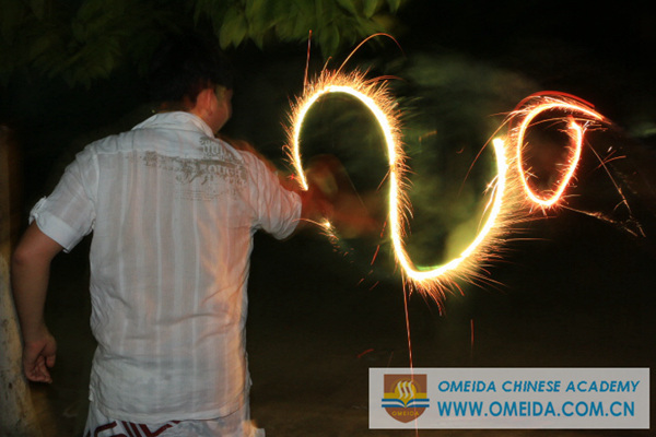 We organized our students to celebrate together and spent a merry night at Omeida. Making snow shin and enjoy firworks are the main activities at that night.