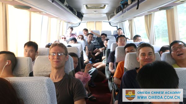 Last Saturday we've been to the Gudong Waterfall. Everybody was very exited to go. We were on the bus when someone mentioned : when will we put out swim suits on ?