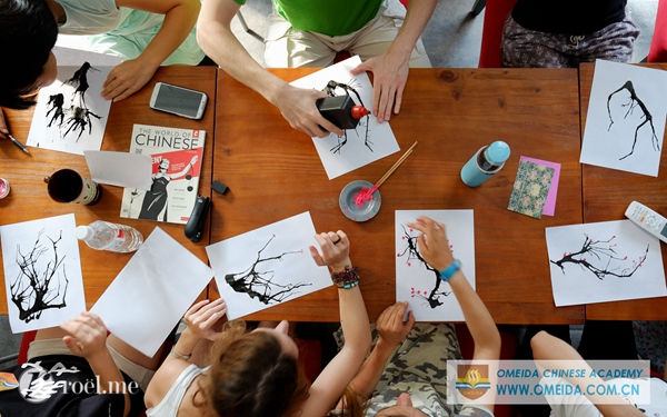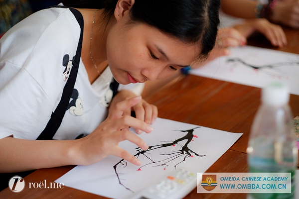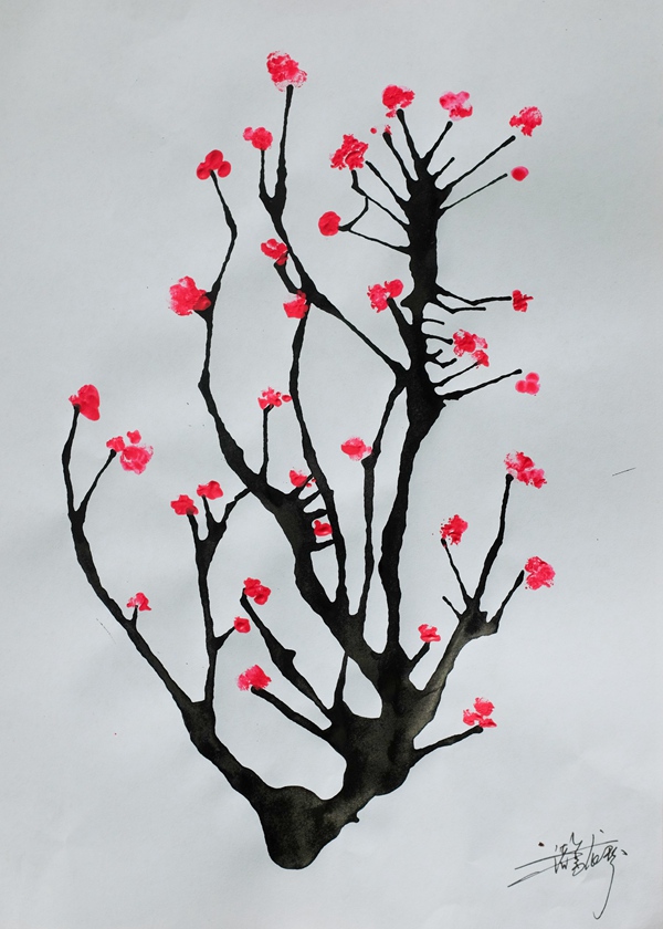 This time in our cultural class we were painting plum blossoms by blowing ink! Have you heard about this type of painting style before? Its actually a lot of fun