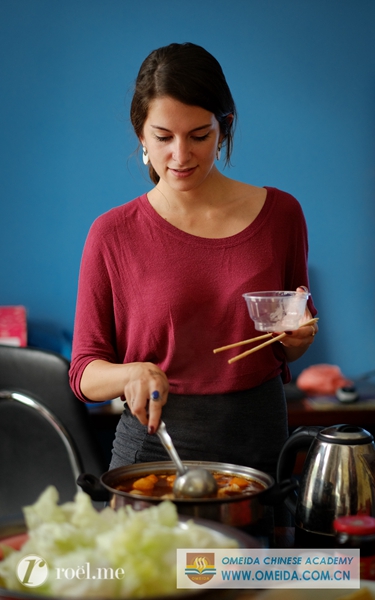 After the brief introduction of Chongqing hot pot, we stared to enjoy the delicious food. Although it is very spicy, everyone does really enjoy the feeling.